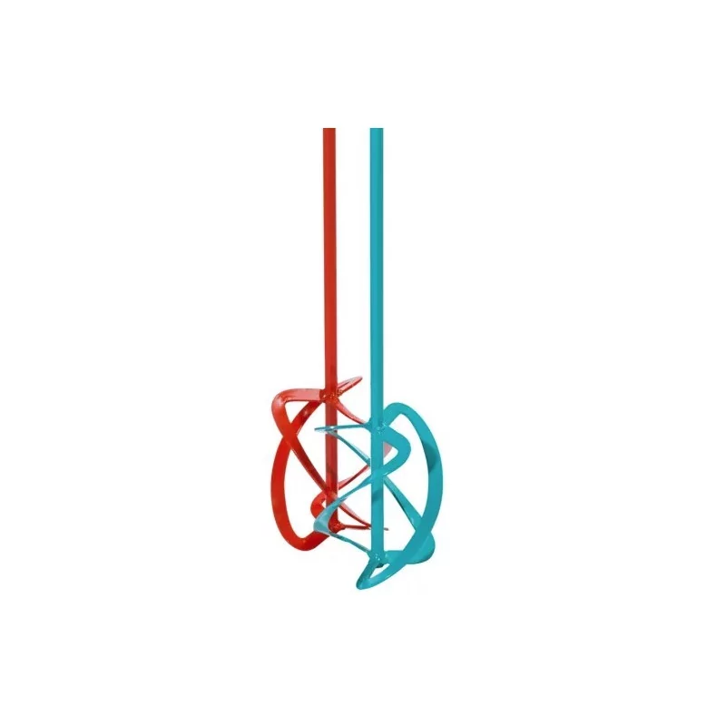 Thanks to two mixers that interlock and create a large mixing surface, you can achieve optimal results up to 50% faster.For heavy and dense materials such as concrete, quartz-filled epoxy resins, screeds, mortars, plaster and thermal insulation. With the mixers inserted in reverse, also suitable for liquid and light materials such as levelling compounds.The design with three mixing blades and the placement of two mixing rods ensures effective mixing of the material. As standard, the MKD mixes the material from bottom to top. When both mixing rods in the machine are swapped, the mixing action changes and low-viscosity materials can be mixed without any problems. The mixers are offered with a special hexagonal shank for HEXAFIX mounting. This allows the mixer to be changed easily without tools.