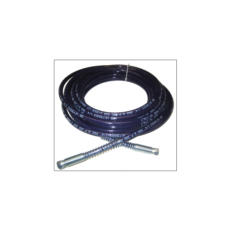 High-pressure hose for painting and hydrodynamic filling: 3/8", length 15 m, pressure 260 bar. For painting and hydrodynamic (airless) painting and filling units of all brands: AIRLESSCO, GRACO, TITAN, WAGNER, CAMPBELL HAUSFELD, KOMATZ, TECNOVER, PRO-SPRAY, STORCH, SINAER. This professional-grade hose has been designed and manufactured to meet demanding applications.